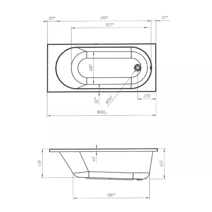 - Размер 160×70 см: Средняя длина и стандартная ширина. Подходит для помещений, где не помещается ванна 170 см.