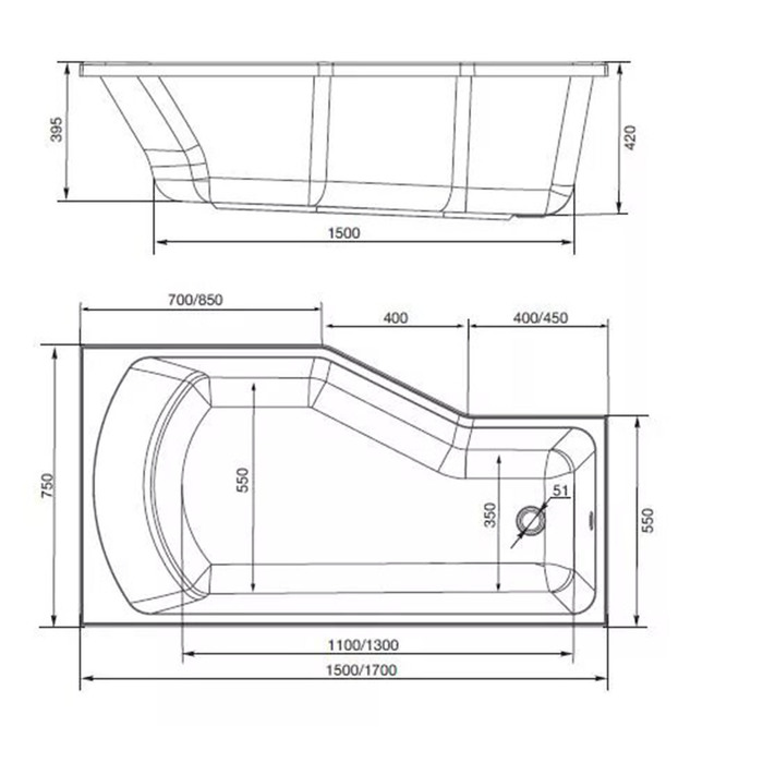 - Левое исполнение: Широкая часть ванны находится слева от входящего. Выбирается под конкретную планировку помещения.