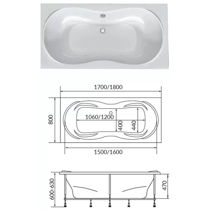 Технические характеристики Ванна акриловая 1MarKa DINAMIKA/AVERS, 170×80 см, без каркаса и панели