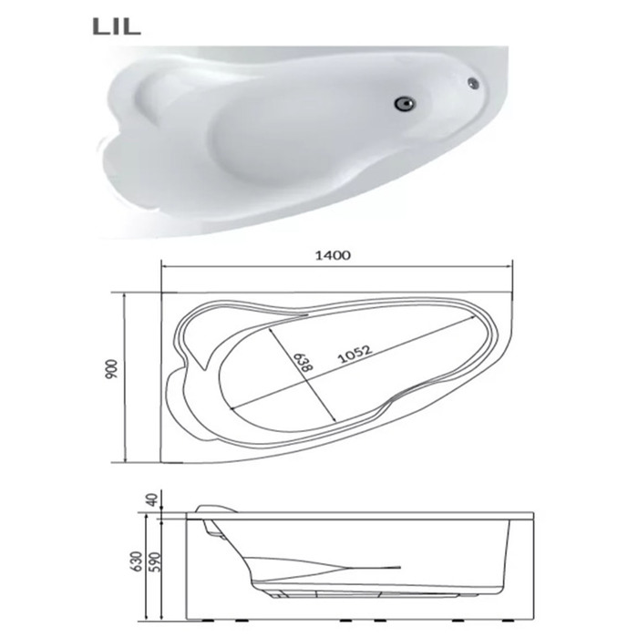 Технические характеристики Ванна акриловая 1MarKa LIL, 140×90 см, левая, без каркаса и панели