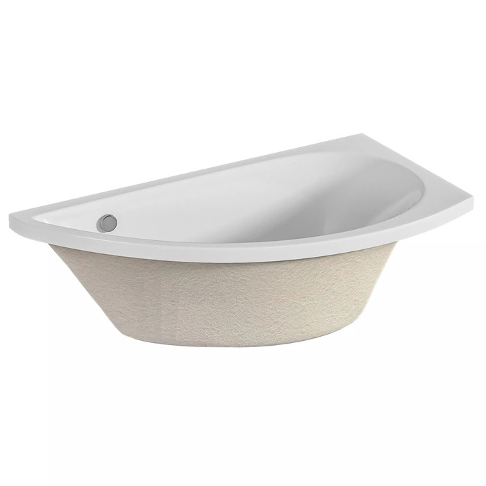 Угловая акриловая ванна 150×75 см, правая, белая, толщина акрила 5 мм, высота 64 см, объём 110 л — компактная модель для установки в углу небольшой ванной комнаты. Изготовлена из акрила толщиной 5 мм. Форма угловая, исполнение правое (основная часть расположена справа). Высота ванны 64 см, внутренний объём 110 л. Ванна поставляется без каркаса и декоративной панели — их необходимо приобрести отдельно.