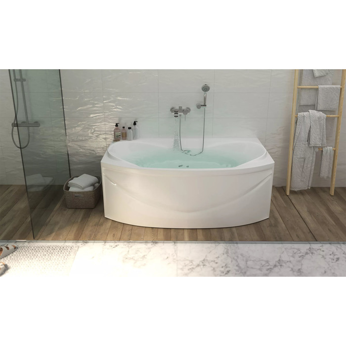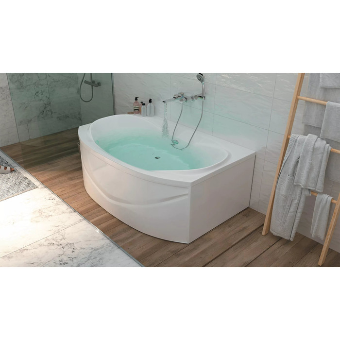 - Асимметричная форма 190×120 см: Увеличенные размеры подходят для просторных помещений. Конструкция обеспечивает комфортное размещение людей высокого роста.