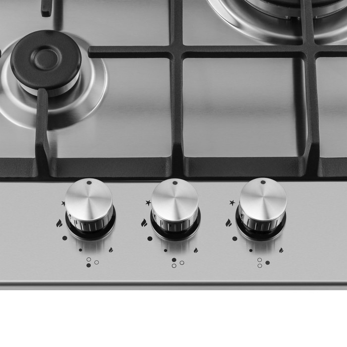Встраиваемая газовая панель на 3 конфорки в серебристом цвете подойдёт для кухни, где важно сохранить удобство приготовления и аккуратный внешний вид. Такой формат помогает готовить несколько блюд одновременно и поддерживать порядок даже при ограниченном пространстве.