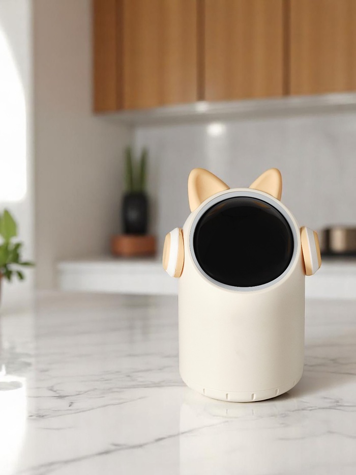 Ведро для мусора сенсорное настольное SAVANNA, 2 л, в ушах и наушниках, бежевое