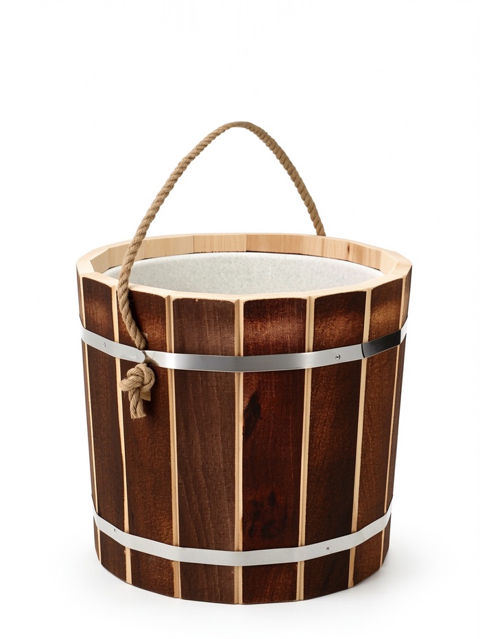 Ведро из липы, 15л, пластиковая вставка, ручка-веревка "Добрыня"