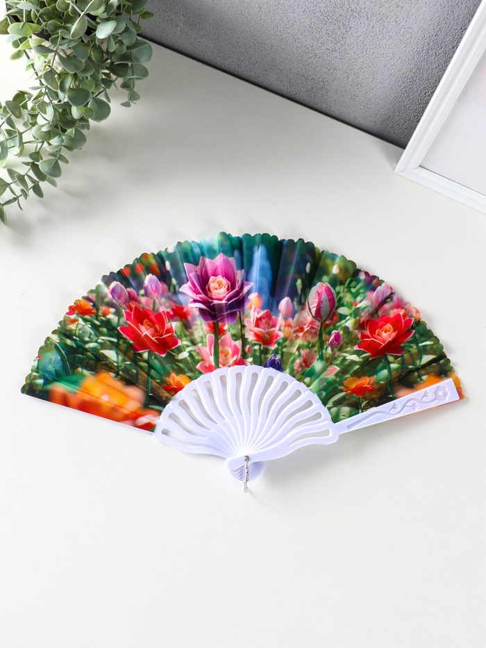 Веер складной «Пластилиновые цветы», 23 см, МИКС