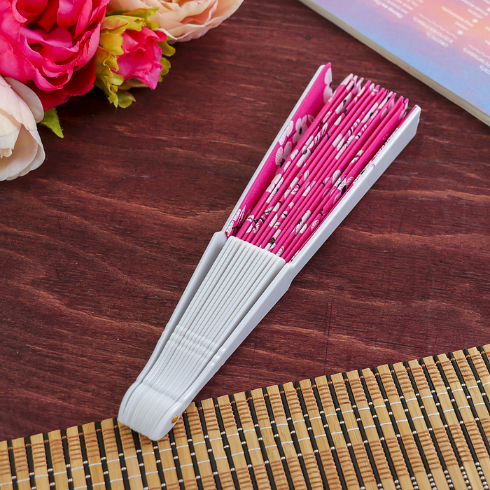 Веер пластик, текстиль "Сакура" МИКС 23 см