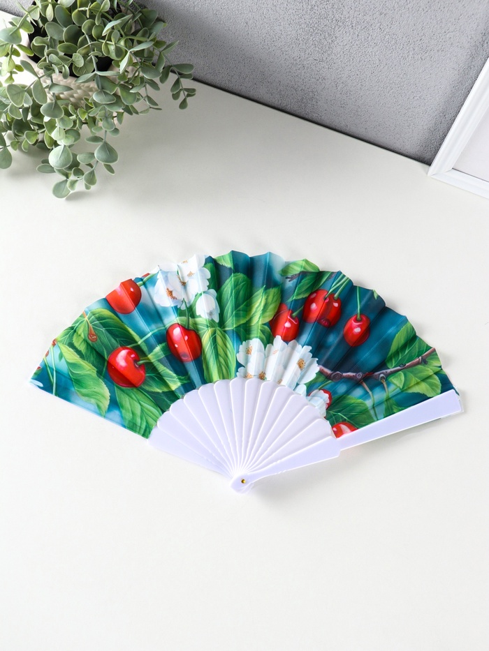 Веер складной «Вишня и цветки», 23 см, МИКС