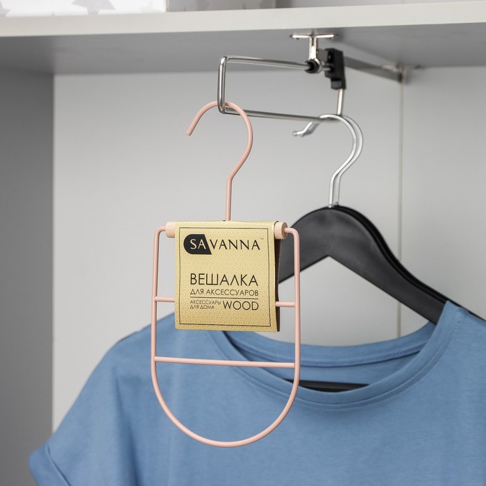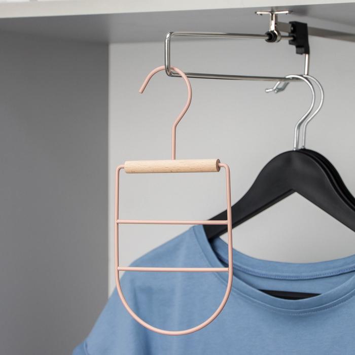 Вешалка для ремней и шарфов SAVANNA Wood, 11,3×24×1,1 см, многоуровневая, цвет розовый