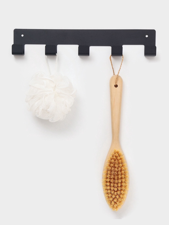 Чёрная настенная вешалка с пятью крючками — простое и надёжное решение для прихожей, ванной или спальни. Её лаконичный силуэт и матовая чёрная поверхность вписываются даже в самый строгий интерьер, не отвлекая внимание, но решая повседневные задачи: принять пальто, сумку, полотенце или рабочую куртку — всё под рукой и без лишнего шума.