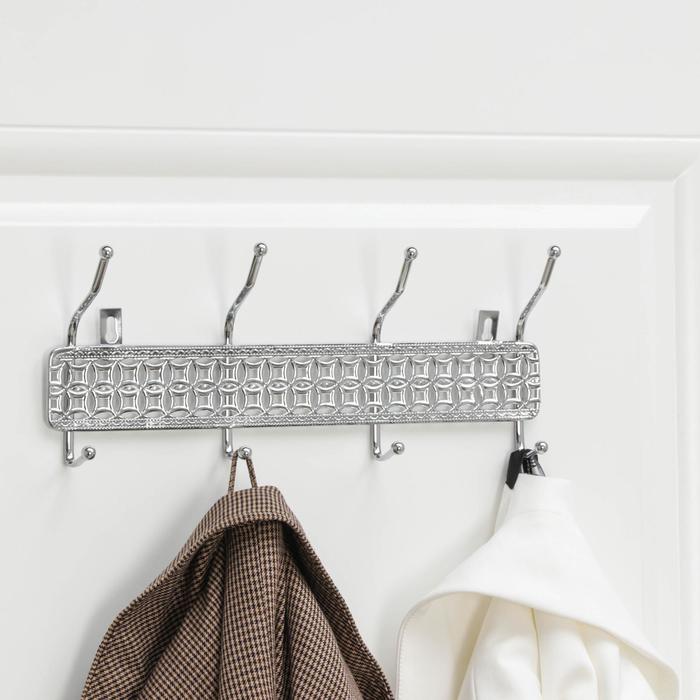 Вешалка настенная на 4 двойных крючка Доляна «Витая», 32.5×13×6 см, цвет хром