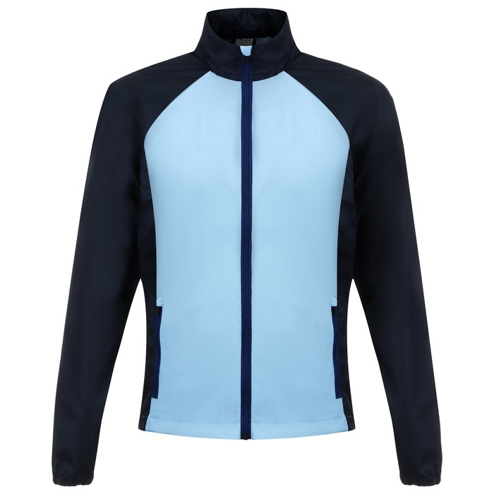 Изготовлена из непромокаемого материала дюспо. Воротник-стойка, капюшон и внутренний ветрозащитный клапан обеспечивают дополнительную защиту от дождя и ветра. Воротник-широкая двойная стойка выполнен в виде кармана для сложенного капюшона, вшитого в основание стойки. По краю капюшона находится кулиса с двумя фиксаторами. По низу куртки по всей ширине расположена кулиса. Рукав-реглан на плоской резинке. Ветровка оснащена двумя карманами на застёжках-молниях.