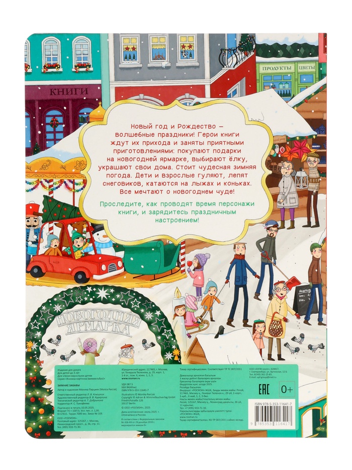 Эта книга напоминает окно в зимнюю сказку, где каждая страница становится источником новых открытий. Это похоже на «путешествие по снежному миру», где ребёнок может разглядывать яркие сцены, находить знакомые предметы и придумывать свои собственные истории. Благодаря продуманным иллюстрациям процесс игры становится естественным и увлекательным, а результат вызывает чувство удовлетворения и радости.