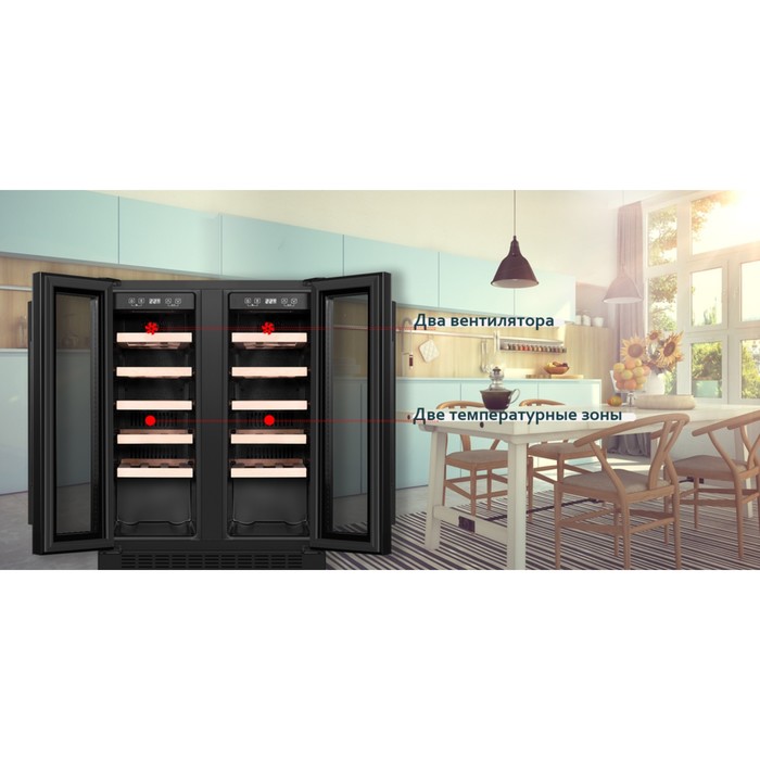 Винный шкаф встраиваемый MAUNFELD MBWC-112S40, 10 полок, 112 л, 40 бутылок