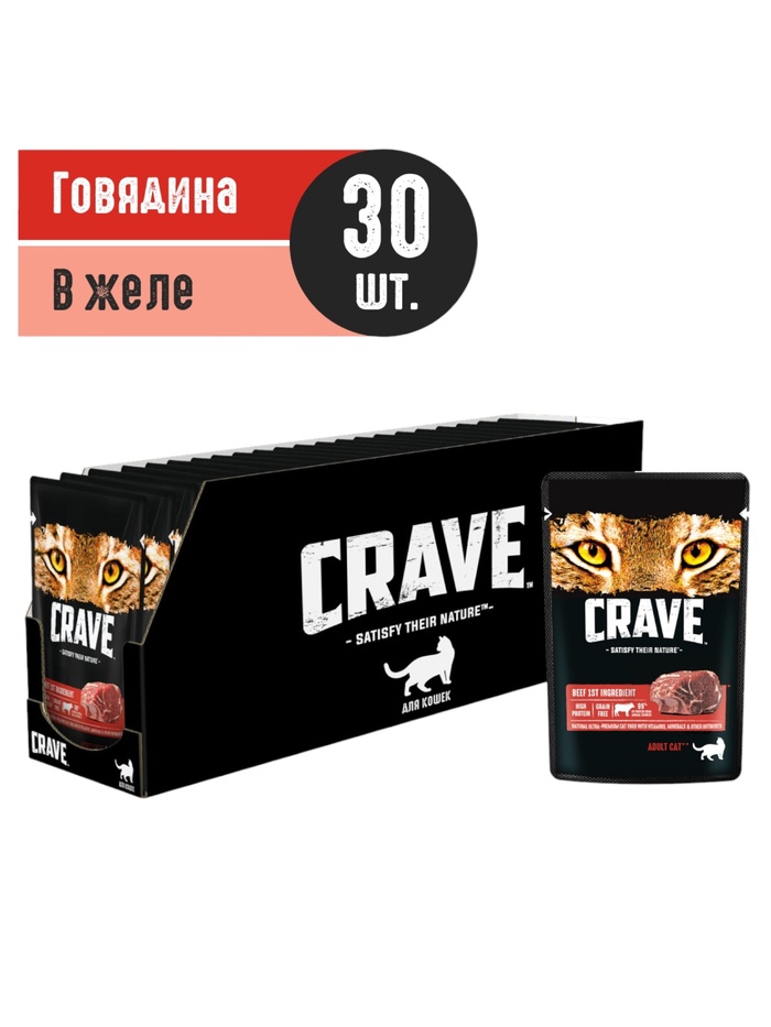 Влажный корм Crave для кошек, пауч говядина в желе 70 г