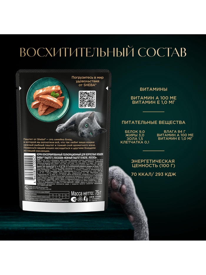 Паштет от Sheba® - это новая линейка блюд, в которой мы воплотили всё, что так любит ваша кошка: нежный мясной паштет и тонкий слой ароматного желе.
