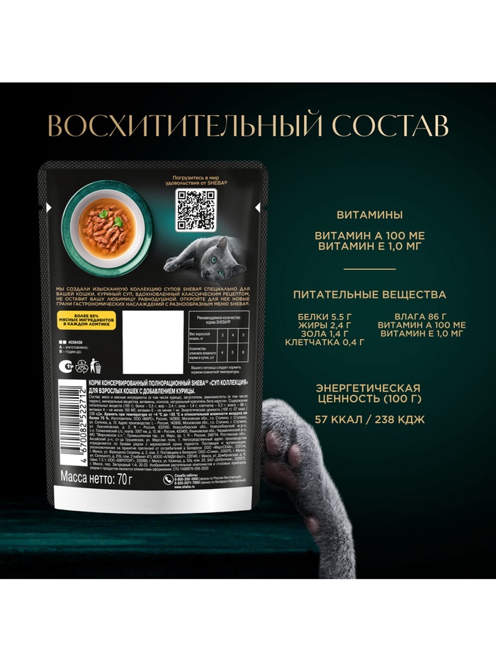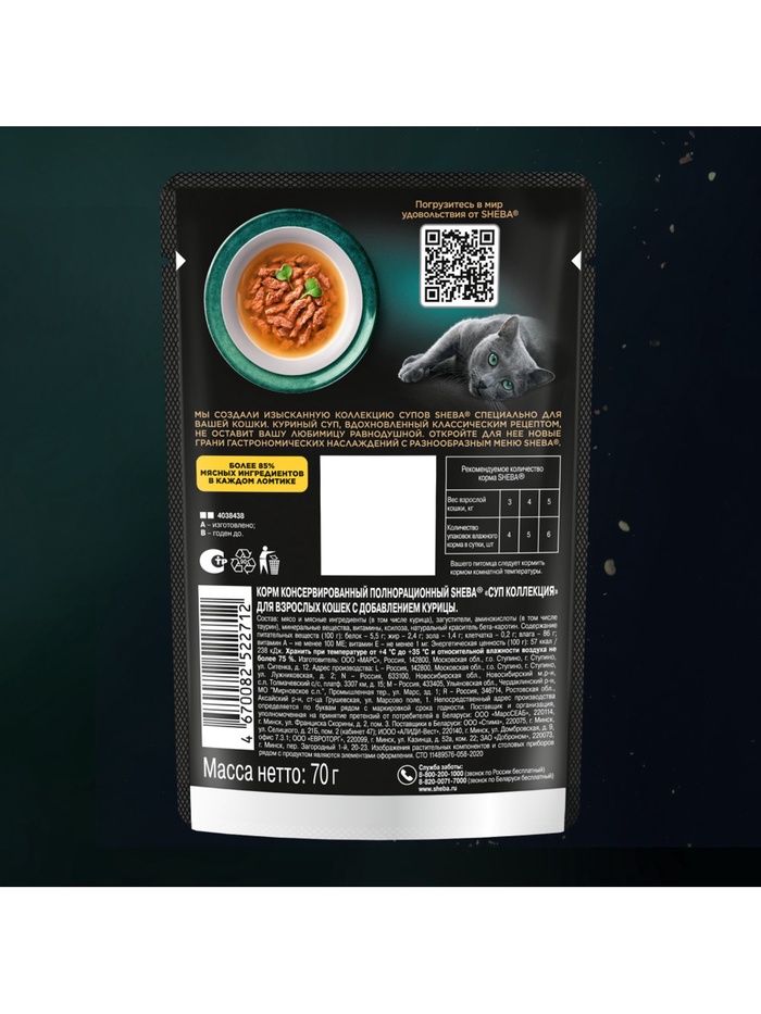 Влажный корм Sheba «Суп Коллекция» для взрослых кошек, суп, курица,70 г