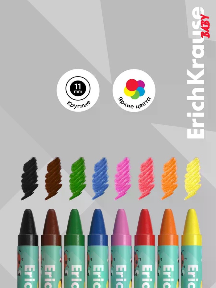 Восковые мелки 8 цв, ErichKrause Baby Jumbo, утолщ, кругл, европодвес