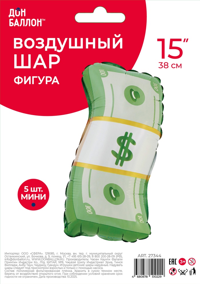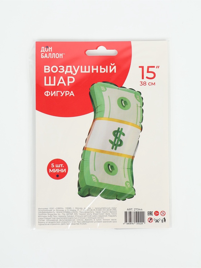 Технические характеристики Воздушные шары фольгированные 15" «Деньги», набор 5 штук