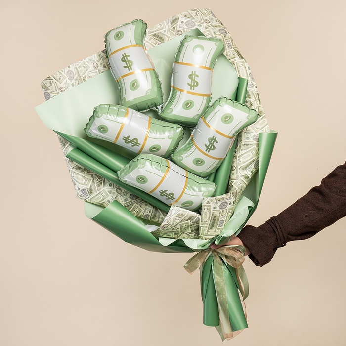 Набор фольгированных шаров в виде пачек купюр. Предназначены для тематического оформления мероприятий, создания аэродизайнерских композиций и фотозон. Подходят для использования на палочках-держателях.