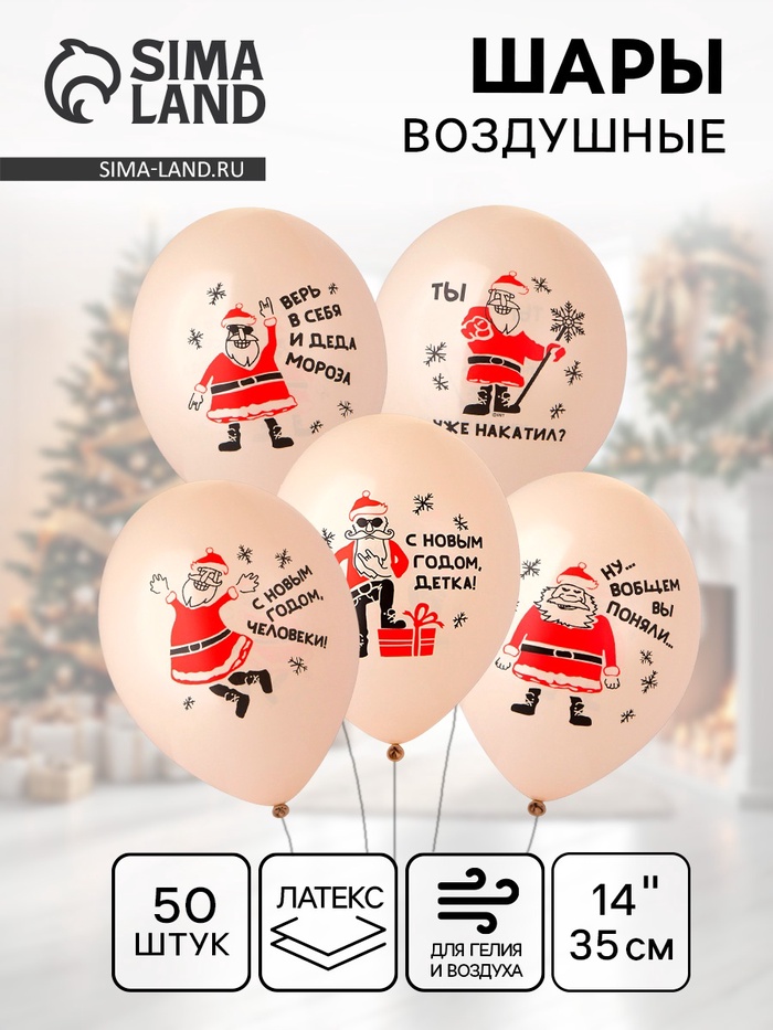 Технические характеристики Воздушные шары латексные 14" «Дед Мороз, приколы», 50 шт., МИКС