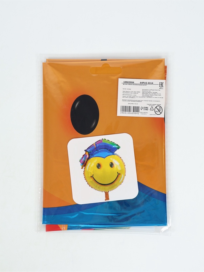 Воздушный шар фольгированный 26" "Смайлик выпускник" цвет синий