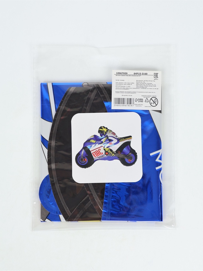 Воздушный шар фольгированный 27" "Мотоциклист" синий