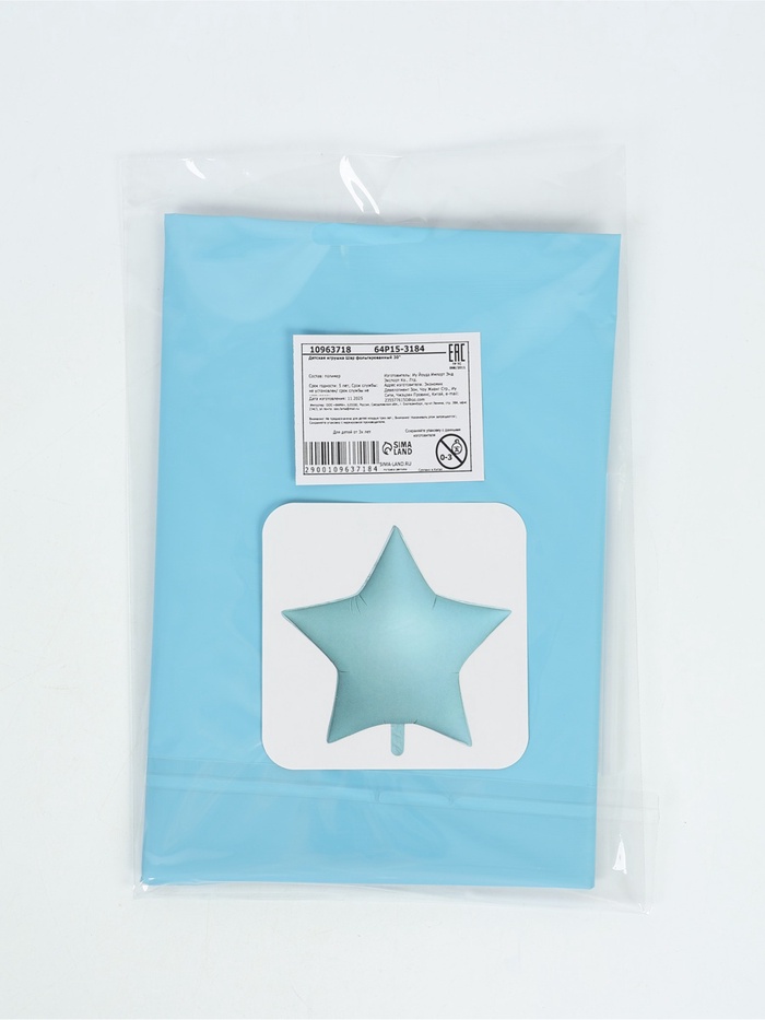 Воздушный шар фольгированный 30" звезда "Светло-голубой сатин"