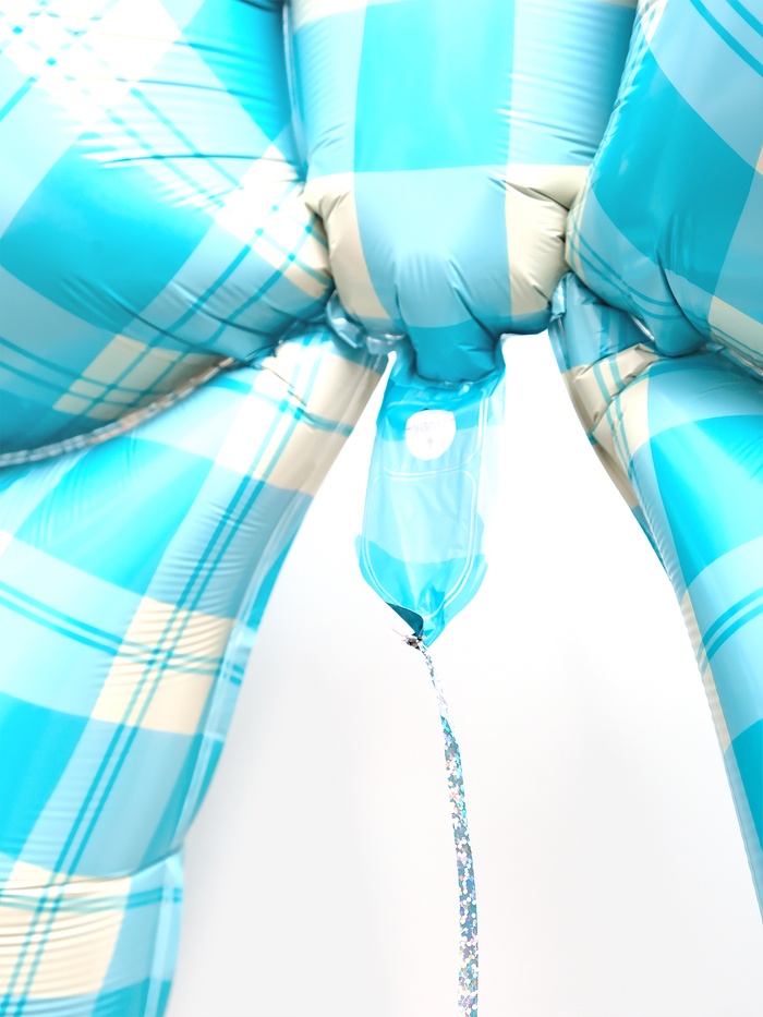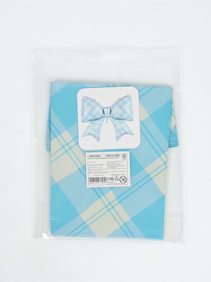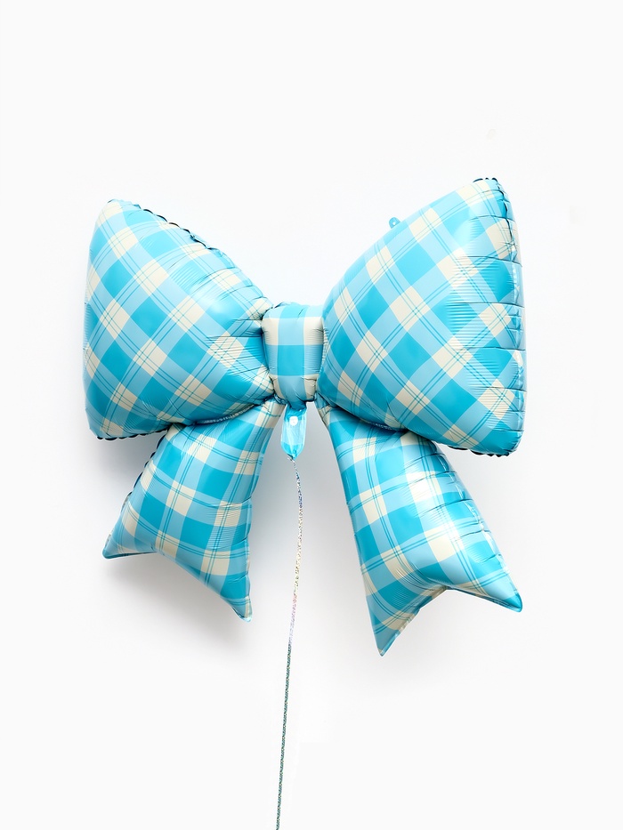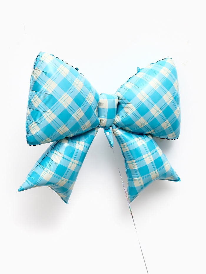 Воздушный шар фольгированный 39" "Бант в клетку", голубой