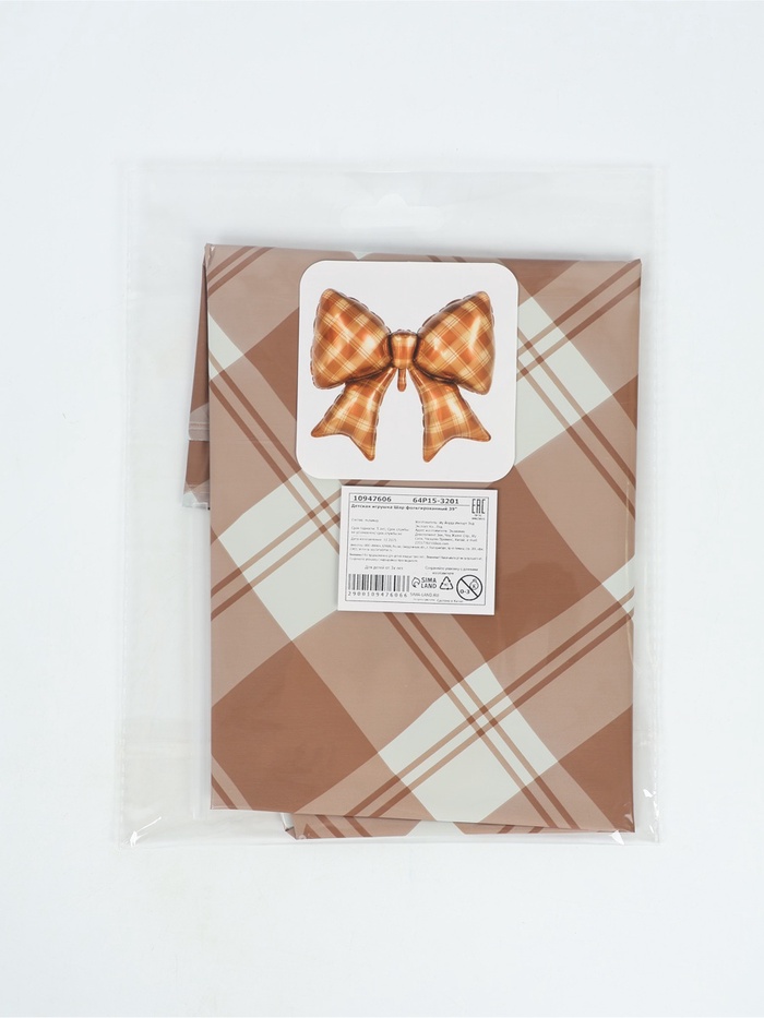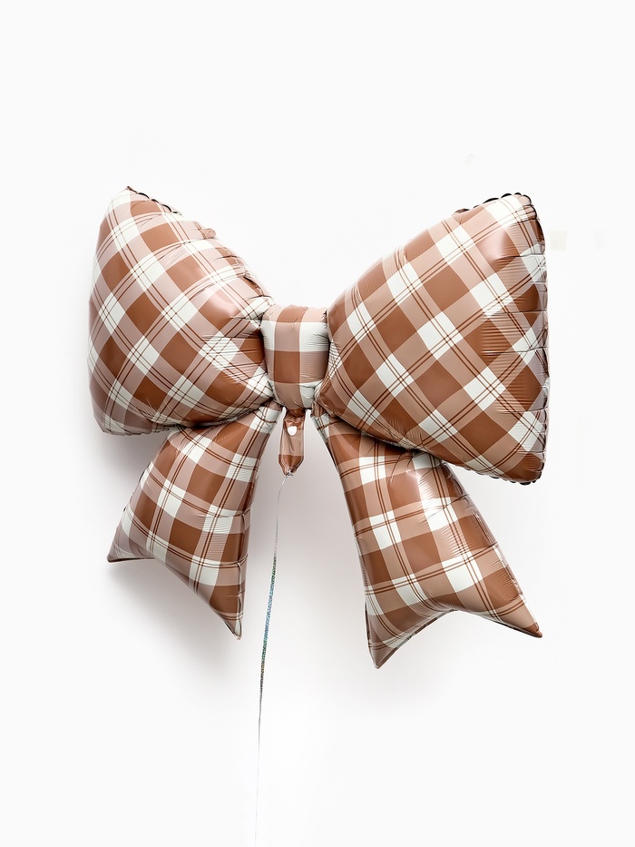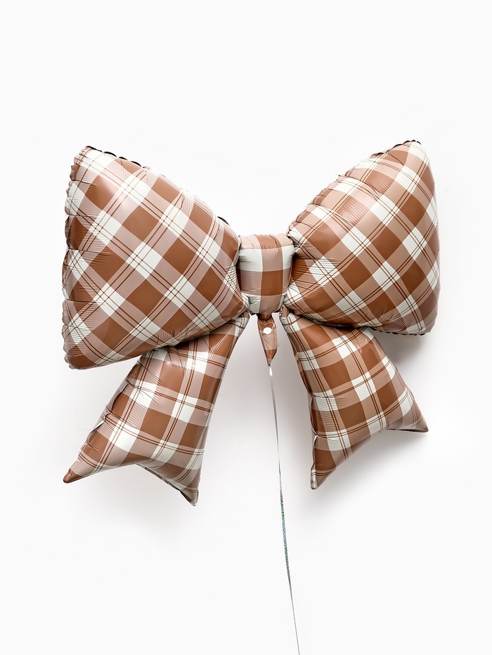 Воздушный шар фольгированный 39" "Бант в клетку", коричневый