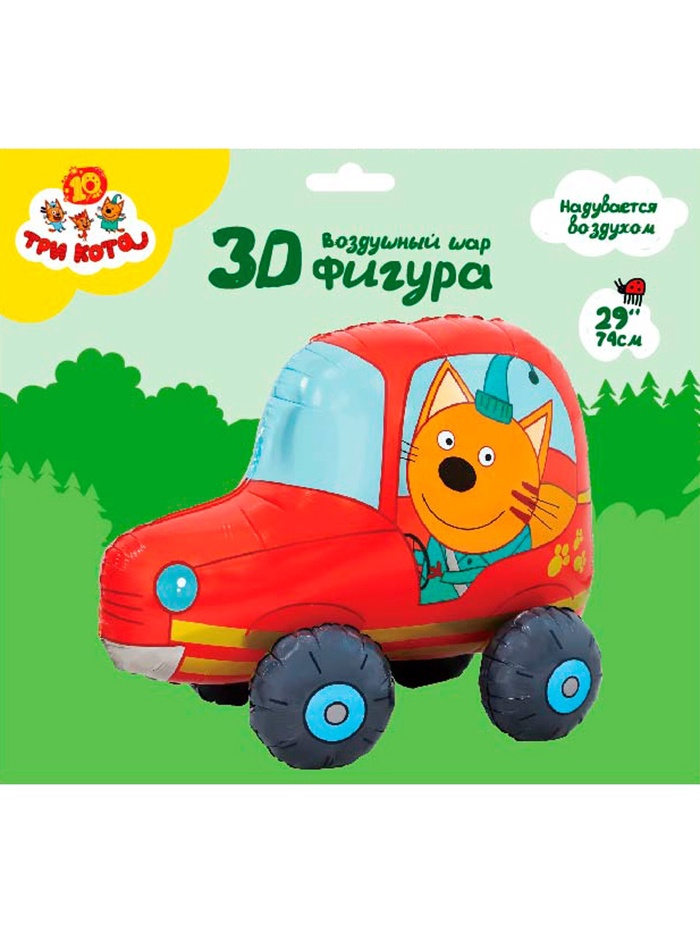Воздушный шар фольгированный 3D 29" «Три Кота. Компот в машине», только под воздух