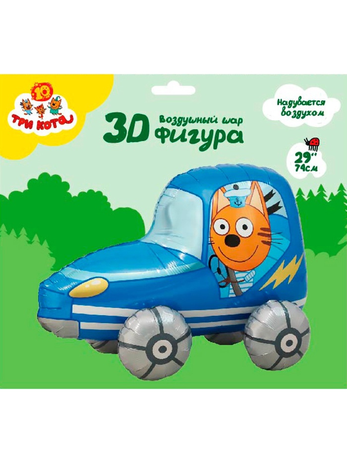 Воздушный шар фольгированный 3D 29" «Три Кота. Коржик в машине», только под воздух