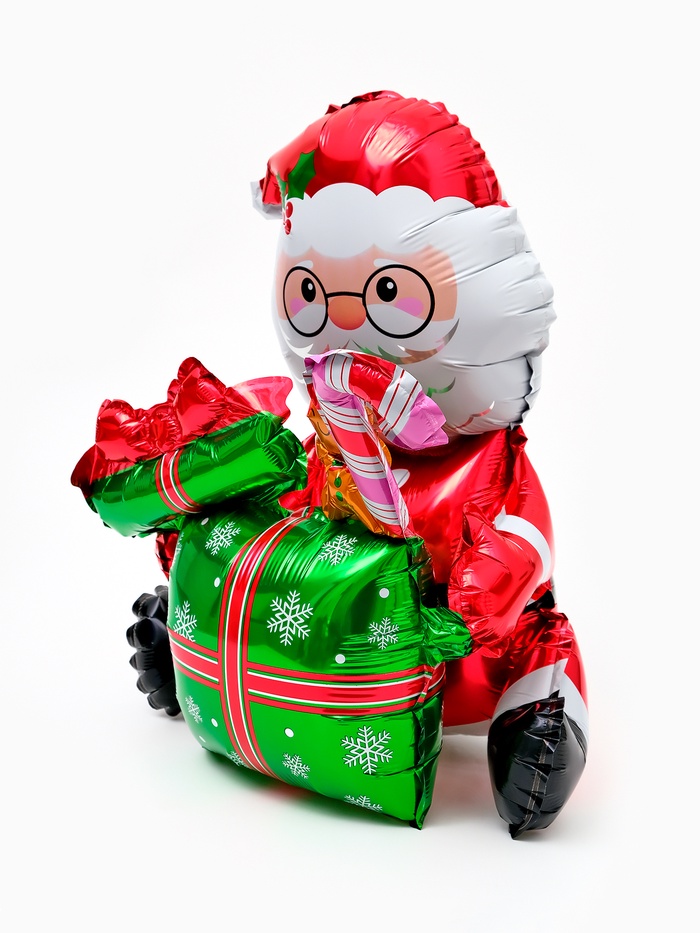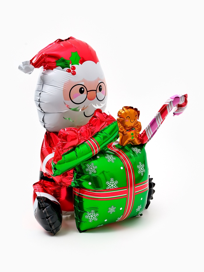 Воздушный шар фольгированный 3D 40" "Дед мороз с подарком", только под воздух