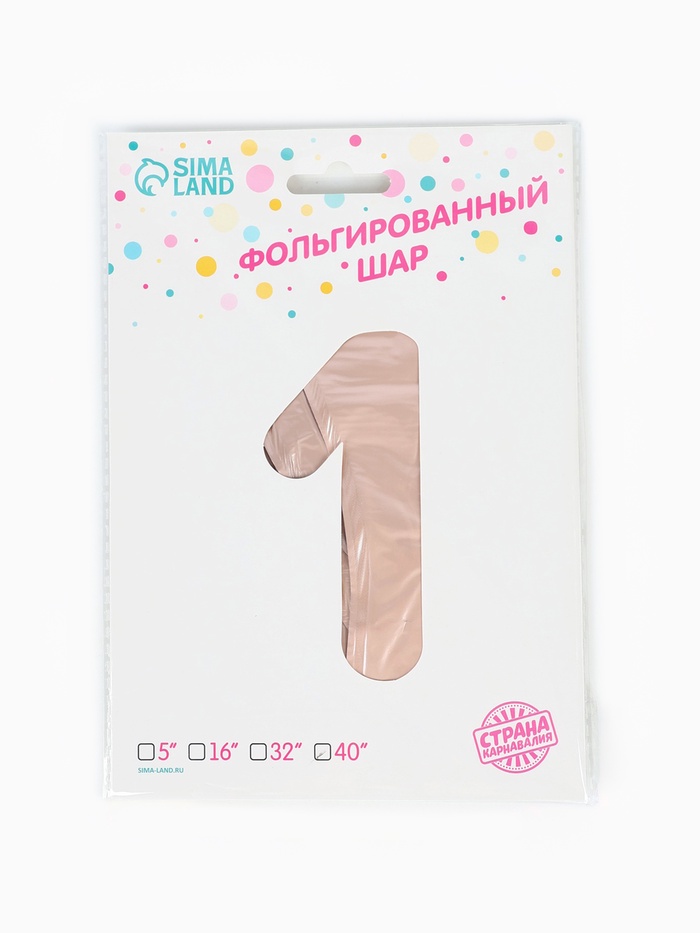 Воздушный шар фольгированный 40" «Цифра 1», нежно - розовый