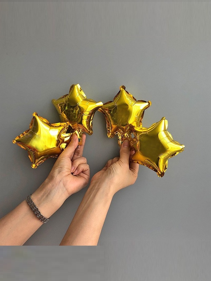 Набор из пяти золотых звёзд станет изящным акцентом в декоре вашего торжества. Такие элементы идеально дополняют фотозону или украшают потолок, создавая эффект парящего света без лишних деталей.
