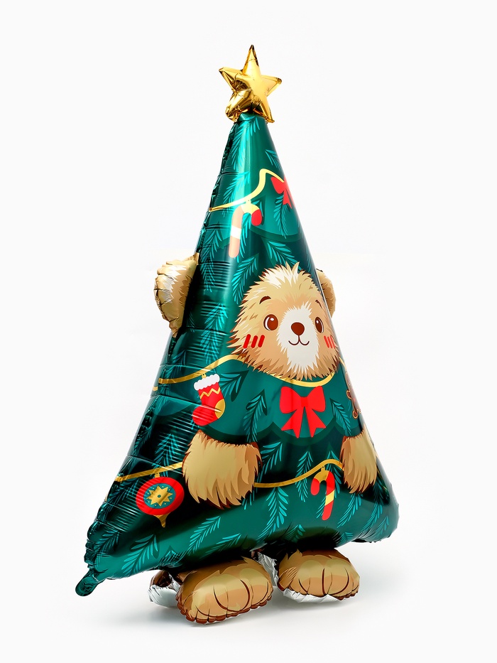 Воздушный шар фольгированный 60" "Мишка с елкой", только под воздух