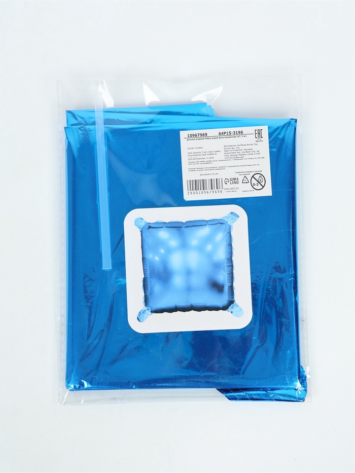 Технические характеристики Воздушный шар фольгированный блок 16" "Синий" набор 5 штук