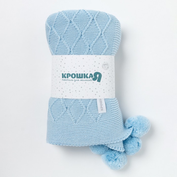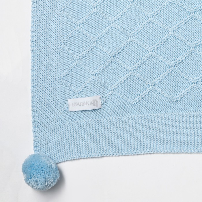 Вязаный плед Крошка Я Рисунок ромб, 90х90 см, цвет голубой