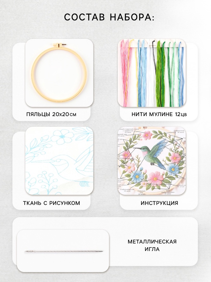 Технические характеристики Вышивка гладью 20х20 см "Вдохновение природы"