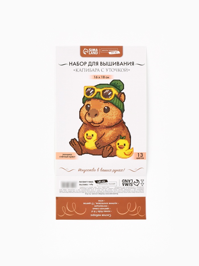 Технические характеристики Вышивка крестиком 16х18 см "Капибара с уточкой"