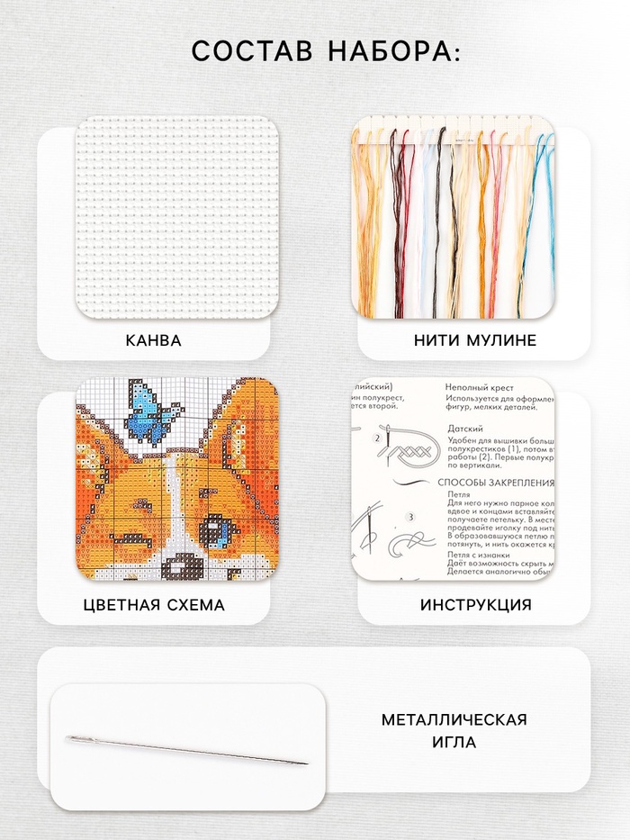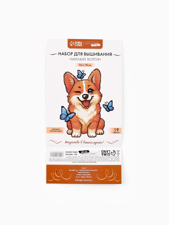 Технические характеристики Вышивка крестиком 16х18 см "Милый корги"
