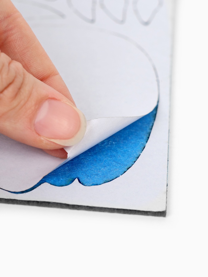 - Основа представляет собой лист фетра с уже нанесённым рисунком. На фетре есть готовый контур, по которому нужно вышивать нитками, постепенно заполняя весь рисунок стежками.