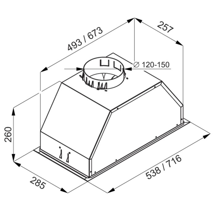 Технические характеристики Вытяжка MAUNFELD Urania 74, встраиваемая, 1250 м3/ч, 4 скорости, 71.6 см, серебристая