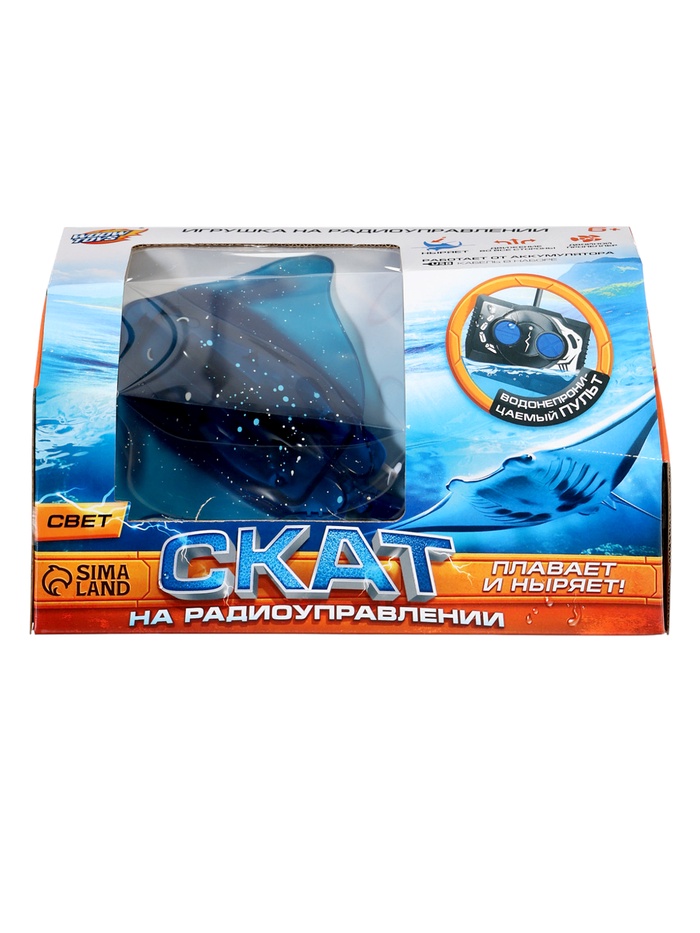 - Реалистичное движение: игрушка плавает вперёд и назад, выполняет повороты влево и вправо. Двойной пропеллер обеспечивает плавный ход и маневренность. Скат двигается в толще воды, создавая полную иллюзию живого существа.