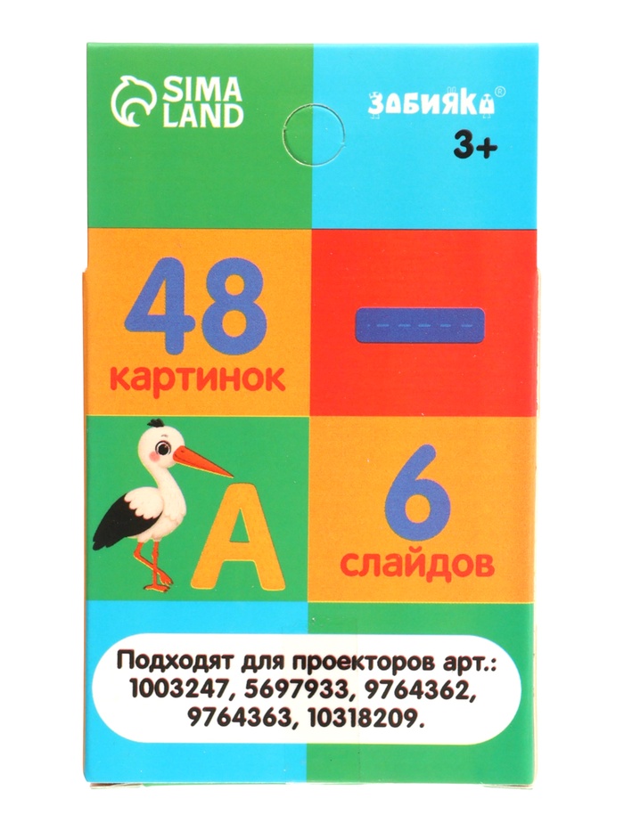 Технические характеристики Слайды для проектора «Алфавит и цифры», набор, 6 слайдов, 48 картинок