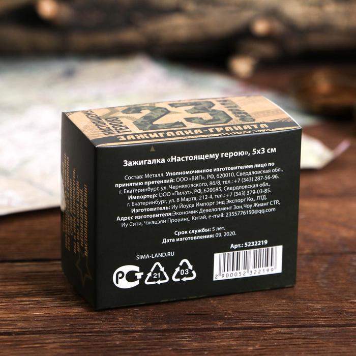 Зажигалка газовая "Настоящему герою", 5 х 3 см