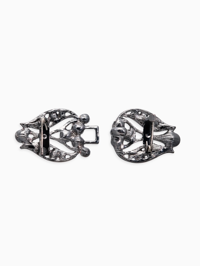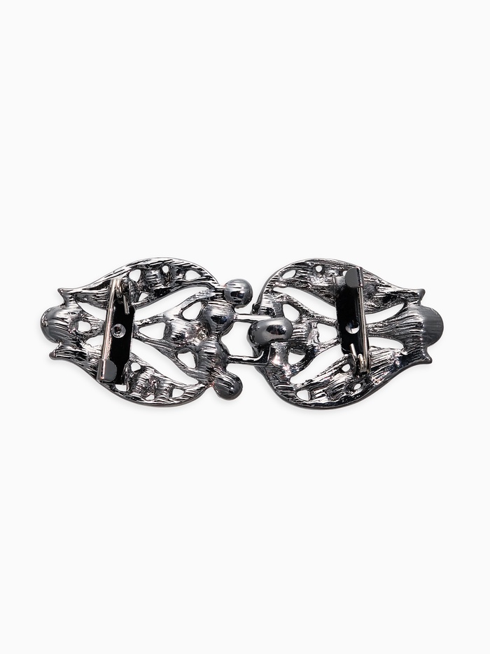 Зажим для кардигана «Ажур. Бутон», серо-белый в сером