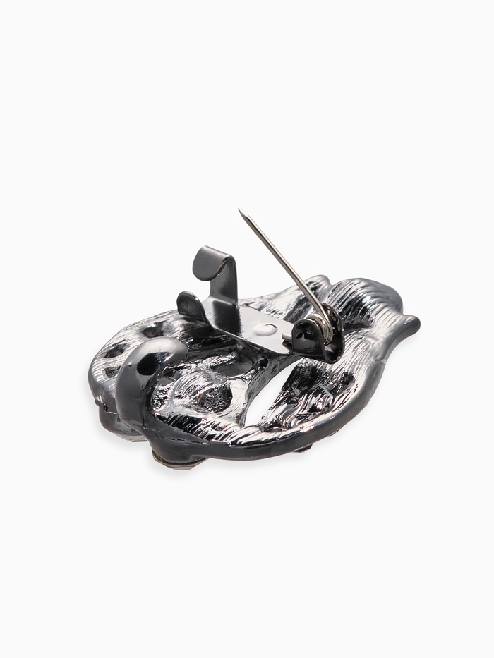 Перед вами захватывающий экземпляр для любителей стильных аксессуаров — изящный зажим в виде бутона розы, предназначенный для кардиганов и свитеров. Эксклюзивное изделие выполнено в мягкой черно-серой гамме с добавлением тонких серебристых акцентов, подчеркивающих утонченную натуру цветка. Дополнительное очарование этому шедевру придают стразы, рассеянные по всей поверхности изделия, словно росинки на лепестках ранней весной.