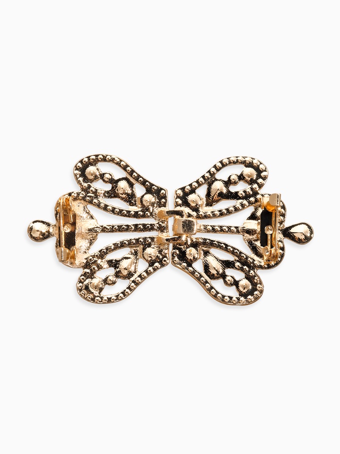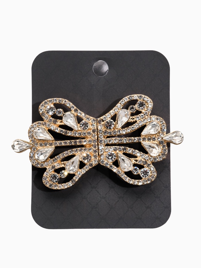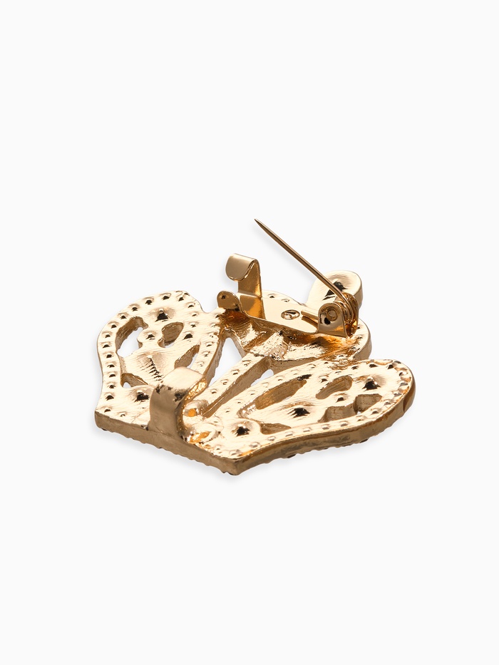 Зажим для кардигана «Ажур», корона империи, белый в золоте