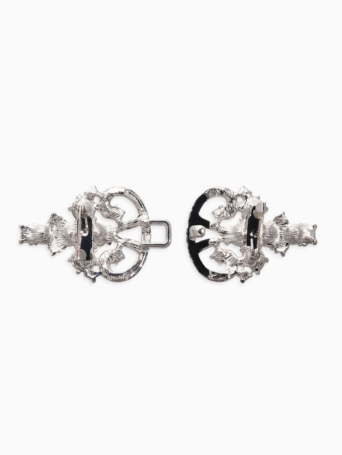 - Аккуратные белые стразы привлекают внимание к форме самого аксессуара, поддерживая его геометрию;
